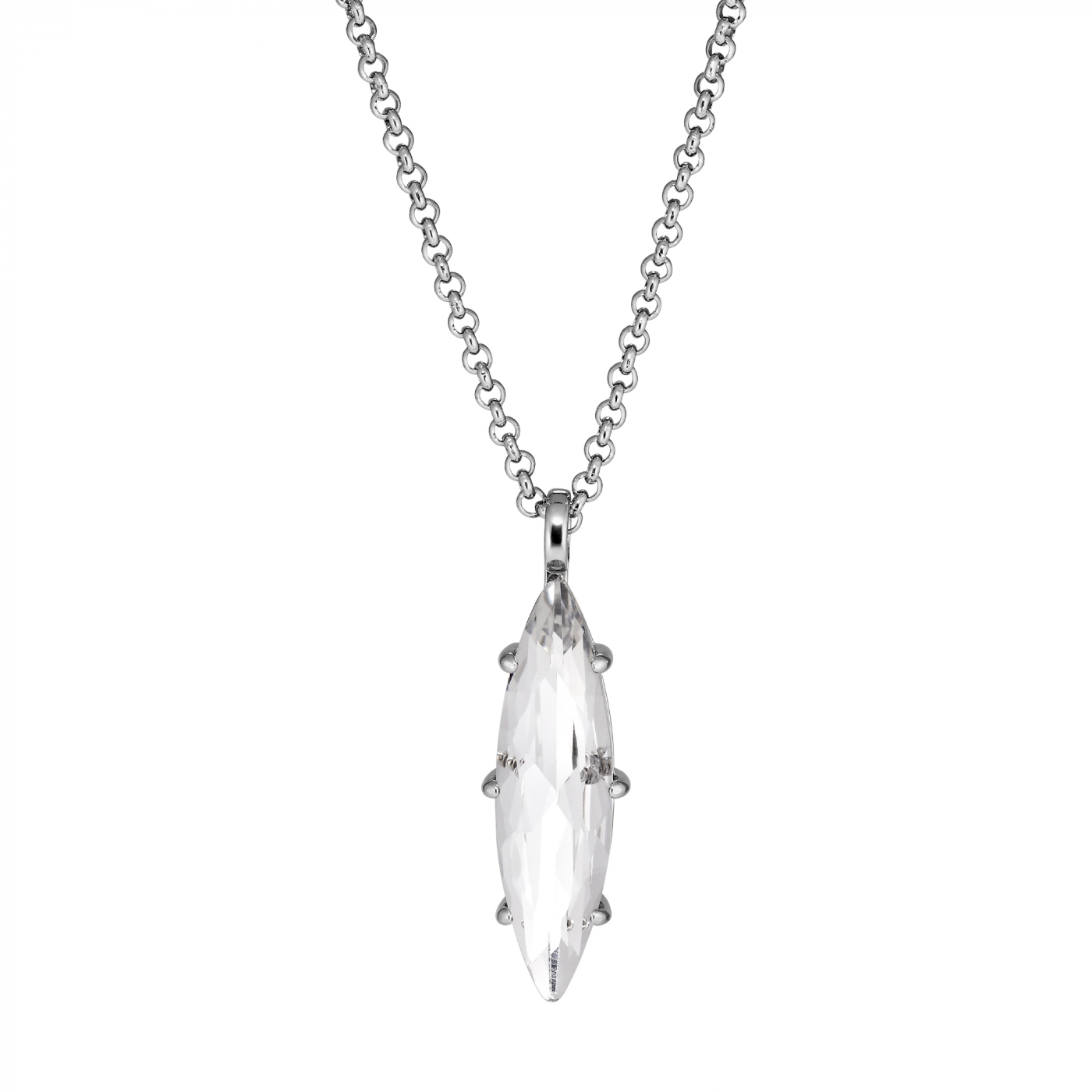 TAKESHI is the name of this simple yet über cool long necklace of a total of 80 cm. Fitted with small steel lobster clasp, and a super elegant, sleek leaf-shaped faceted glittering crystal, and set in a classic jewel setting. This neck piece of jewellery is sure to attract attention.